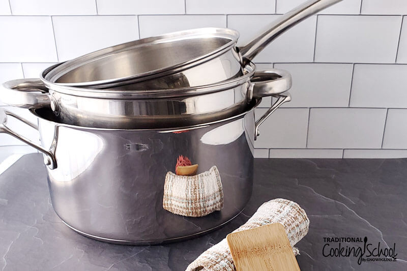 To clean a stainless steel saucepan, mix baking soda and water to form a paste. Scrub with a soft sponge, rinse with water and dry. Stainless steel saucepans are easy to clean with just a few simple steps. Mix baking soda and water to form a paste, and apply it to the saucepan. Then, scrub