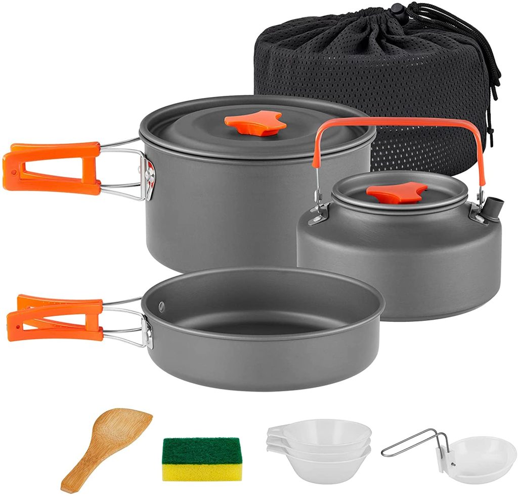 Every camping cookware set is different and will offer a different variety of pots, pans, cups, bowls, plates, and utensils. Some include other handy tools like a colander, a cutting board, and even some spatulas or whisks.