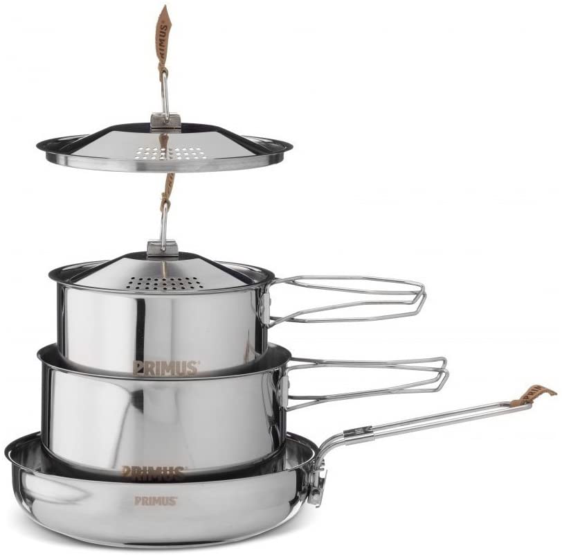The cookware is made of anodized aluminium and is ideal for open fire cooking. It is made to be lightweight and prevents the food from getting burnt. It is also anti-scald and has a large capacity. You can use this set for cooking for two adults or two children, and they can be cleaned easily. It is a great idea to bring a mess kit with you when you’re camping.