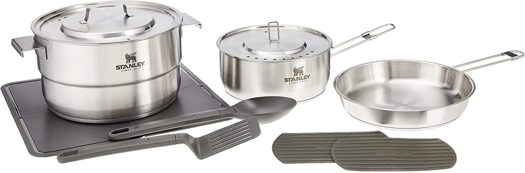 Stainless steel camping cookware is very durable and easy to clean. Choose a set with a non-stick coating for easy cleaning. If you’re looking for a high-quality set that is easy to store and has all the essential pieces, consider the Even-Heat Base Camp Pro Cook Stainless Steel Set by Stanley. The set is expensive, but the value is worth it. It comes with everything you need for quick and easy cooking and cleanup.
