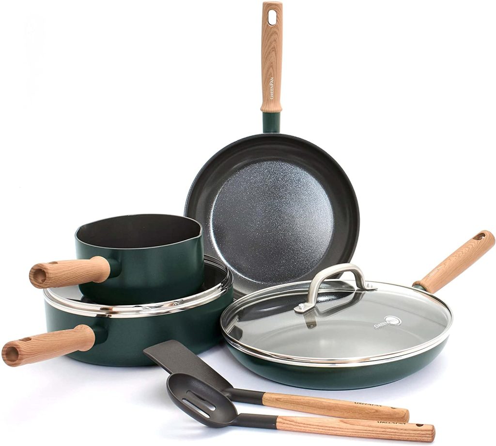 4.GreenPan Hudson Healthy Ceramic Nonstick, Cookware Pots and Pans Set, 8 Piece, Forest