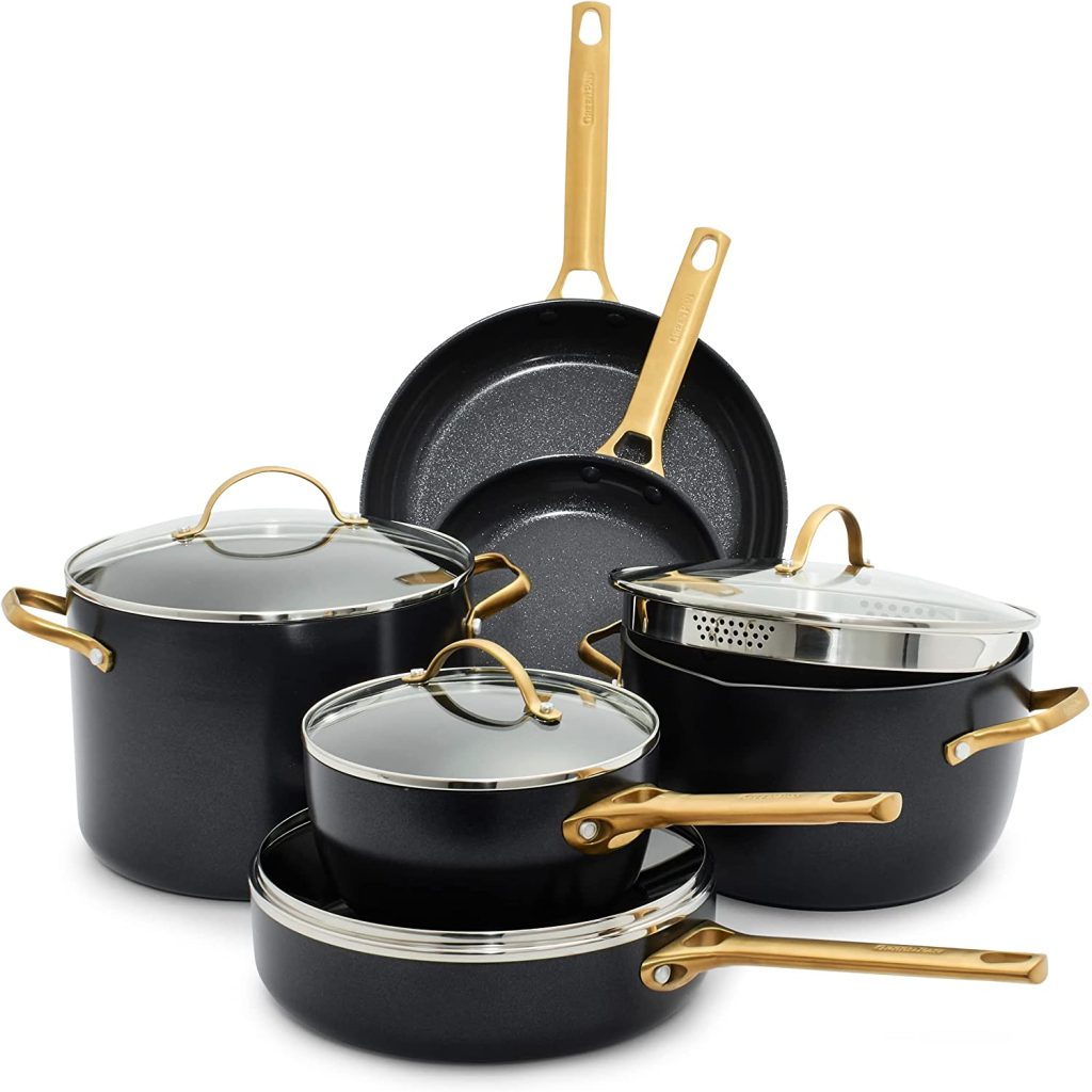 6.GreenPan Reserve Hard Anodized Healthy Ceramic Nonstick 10 Piece Cookware Pots and Pans Set, Gold Handle, PFAS-Free