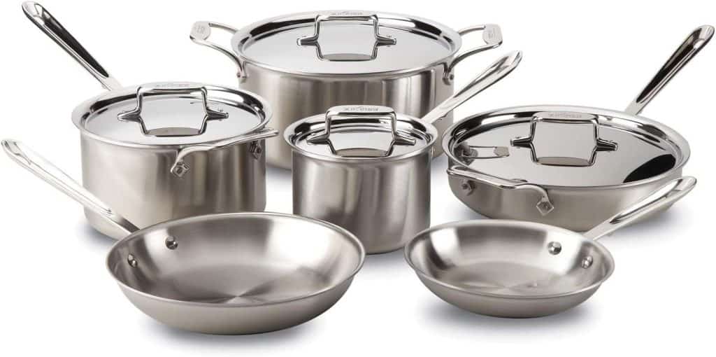 - Best Overall: All-Clad Brushed D5 5-Ply Stainless Cookwarse Set