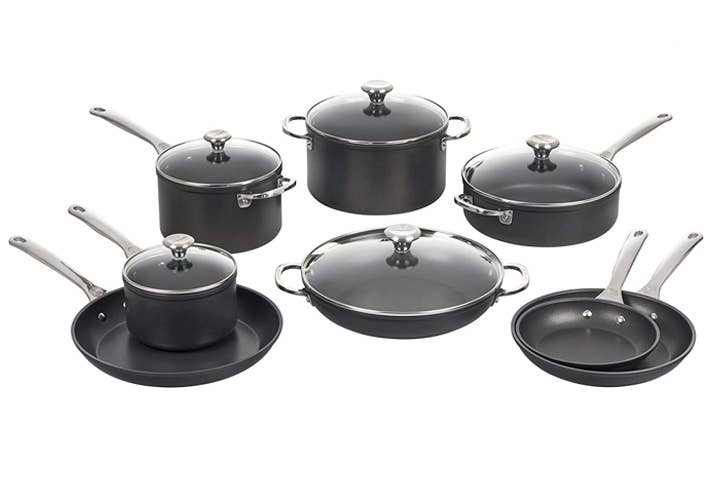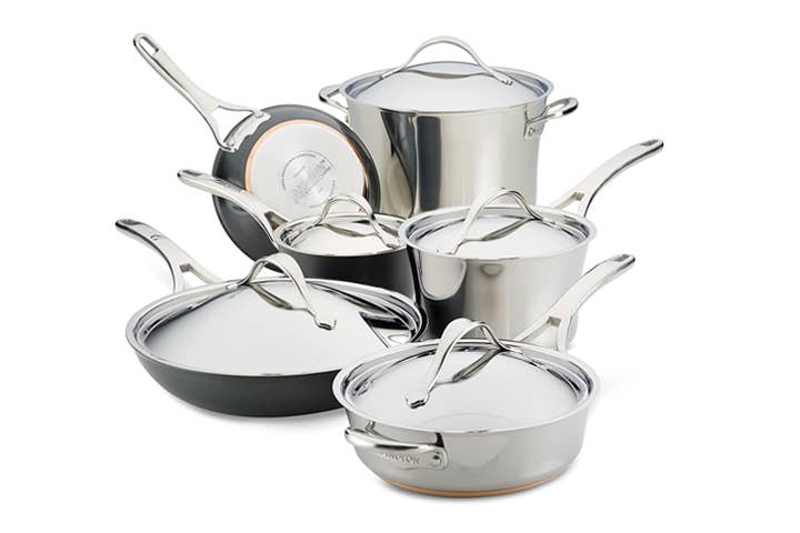 - Best Overall: Anolon 11-Piece Stainless Steel & Hard Anodized Aluminum Cookware Set