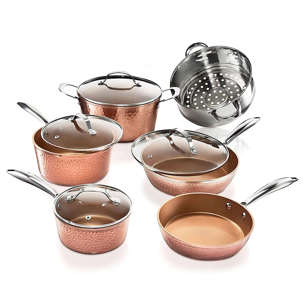 - Best Faux Copper Cookware Set: Gotham Steel Hammered Collection Premium Cookware Set