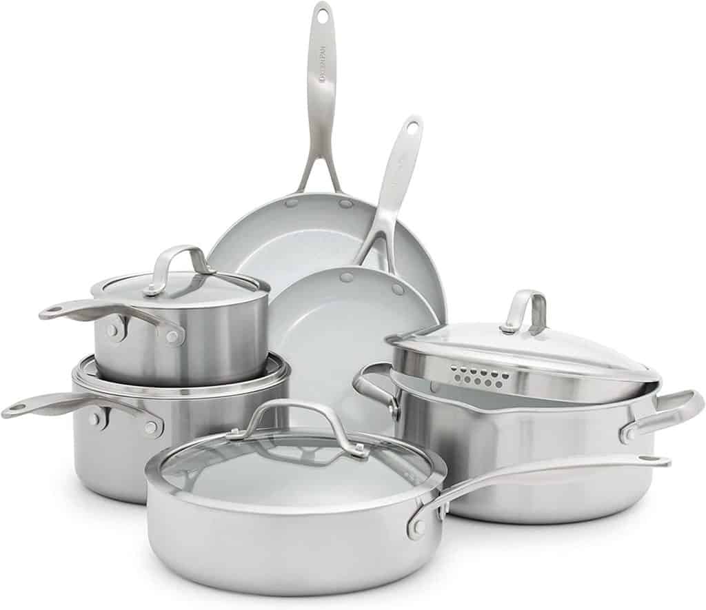 - Superior Heat Retention: The Cuisinart 11-piece cookware set is made of stainless steel, which is a great conductor and distributor of heat. This ensures that foods are cooked evenly to perfection, without hotspots or burning.