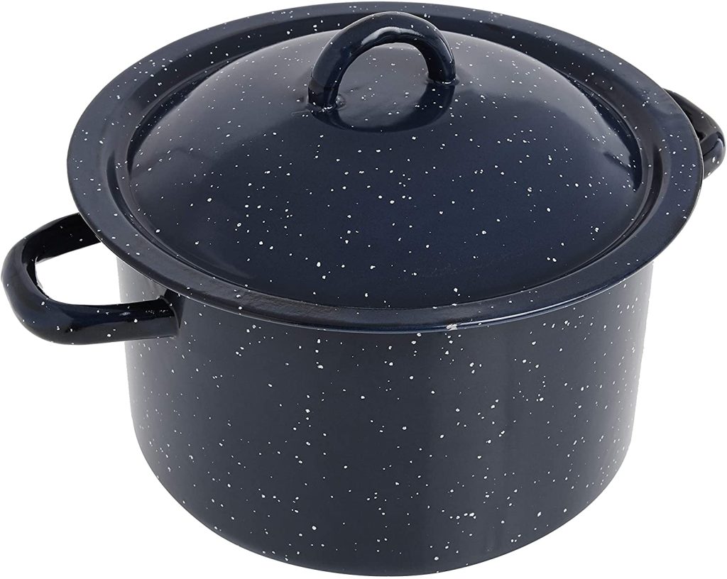 Granite cookware is one of the many types of enamelware. It typically consists of a carbon steel core which is coated with porcelain enamel. Despite its name, it doesn’t contain any granite and is only named as such because of its similarity in appearance.