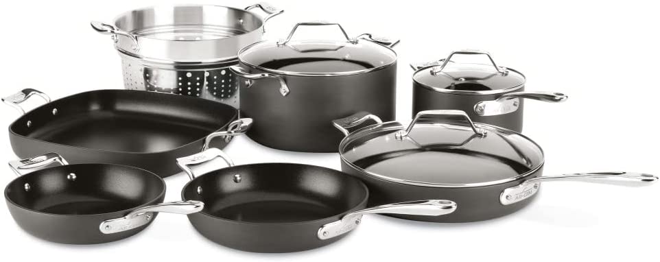 12.All-Clad Essentials Nonstick Hard Anodized Cookware Set, 10-Piece, Black