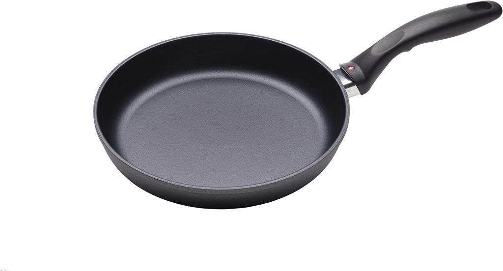 This Swiss Diamond 9,5-Inch Nonstick Fry Pan is an excellent all-around fry pan for most home cooks. 9,5-inch size is a sweet spot for most kitchens as it’s not too big, and it can accommodate eggs for a whole family.