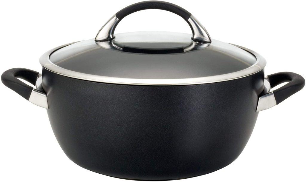 The Circulon Symmetry Hard-Anodized Nonstick 3-Piece Cookware Set is dishwasher-safe and features a beautiful, minimalist design. It is the perfect set for spicing up your favorite dish with stir-frying vegetables, making risotto, and more. The Saucepot also has metal utensil safe handles for added confidence.