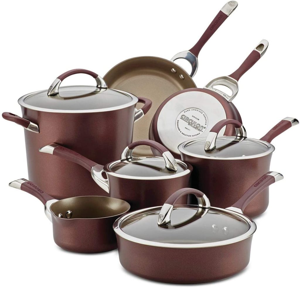 There are several Circulon cookware sets to choose from. This brand has become a household name for its premium quality and superior nonstick coating. Among the different types of Circulon cookware, this one is the most expensive.
