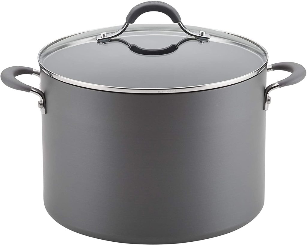 Rachel Ray has a collection of cookware that is easy to use and maintain. The cookware is made of aluminum and enamel porcelain with a PFOA-free non-stick interior. The sets are dishwasher and oven-safe, but the manufacturer recommends hand-washing to maintain their best appearance. With a simple soap and warm water wash, most foods will slide off the pans. These pieces are a great value for the price.