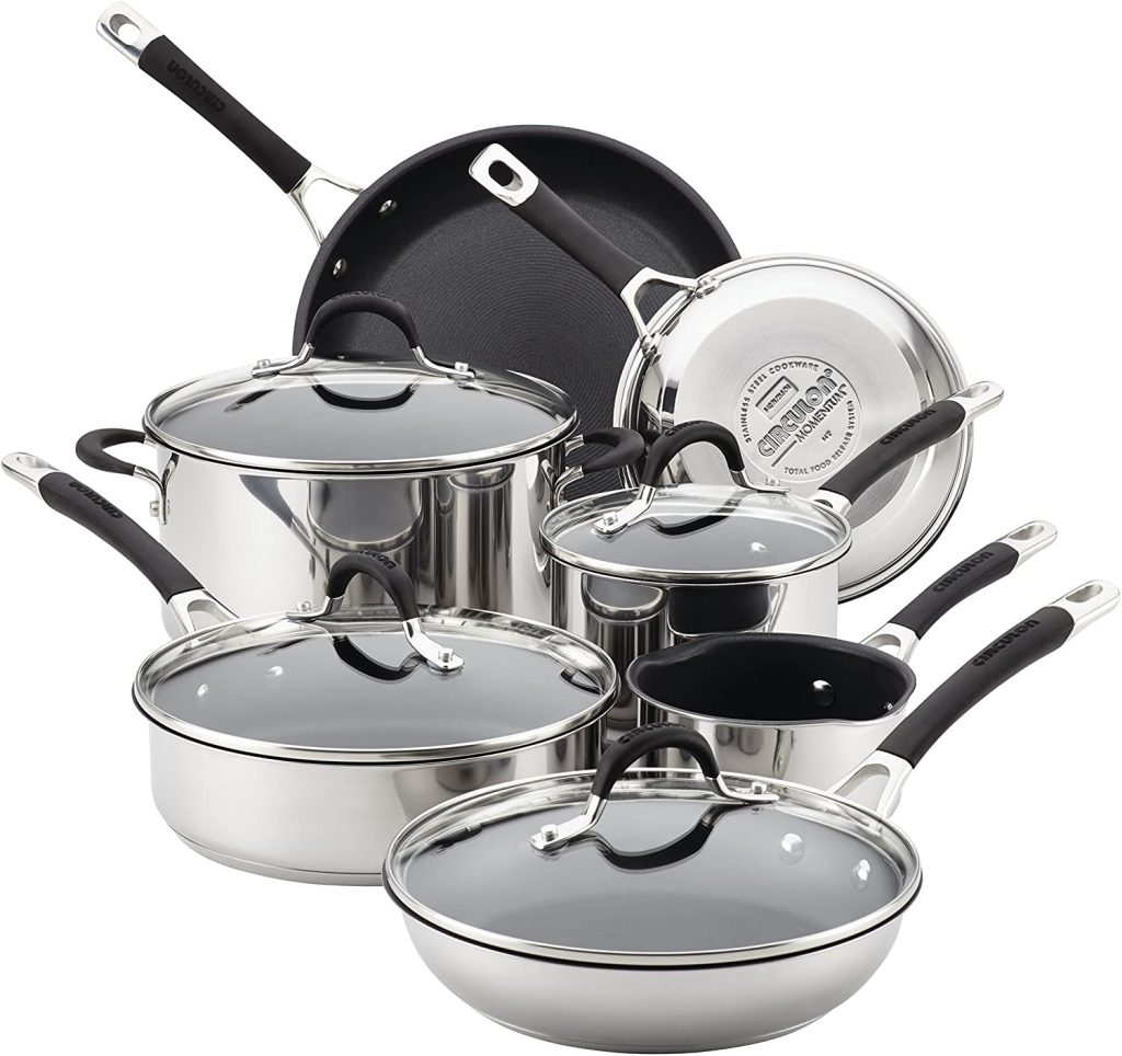 ![]() | 9. Circulon Momentum Stainless Steel Nonstick 11-Piece Pots and Pans | Fully encapsulated magnetic stainless steel base | Check Price On Amazon | 4.4 |