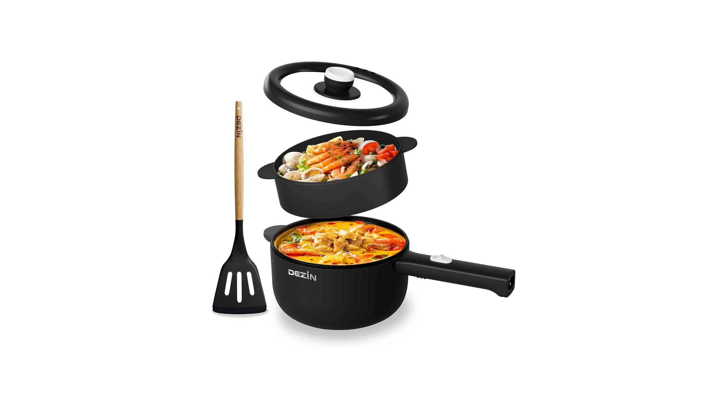 - Looking for a versatile kitchen companion that can whip up quick meals and impress your friends? The Dezin Hot Pot Electric, 2L Non-Stick Sauté Pan, Rapid Noodles Cooker, Mini Portable Pot for Steak, Egg, Fried Rice, Ramen, Oatmeal, Soup with Power Adjustment & Spatula, College Dorm Room Essential offers a compact and capable solution for a variety of culinary needs, making it an excellent addition to any modern kitchen or dorm room. This electric pot aims to simplify cooking with its user-friendly design and multi-functional capabilities.