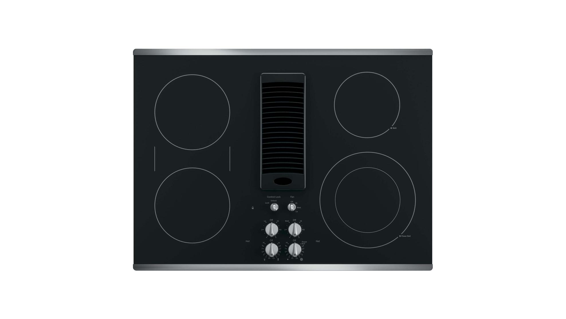 GE Profile Series 30″ Downdraft Electric Cooktop Black Glass with Stainless Steel Trim PP9830SJSS