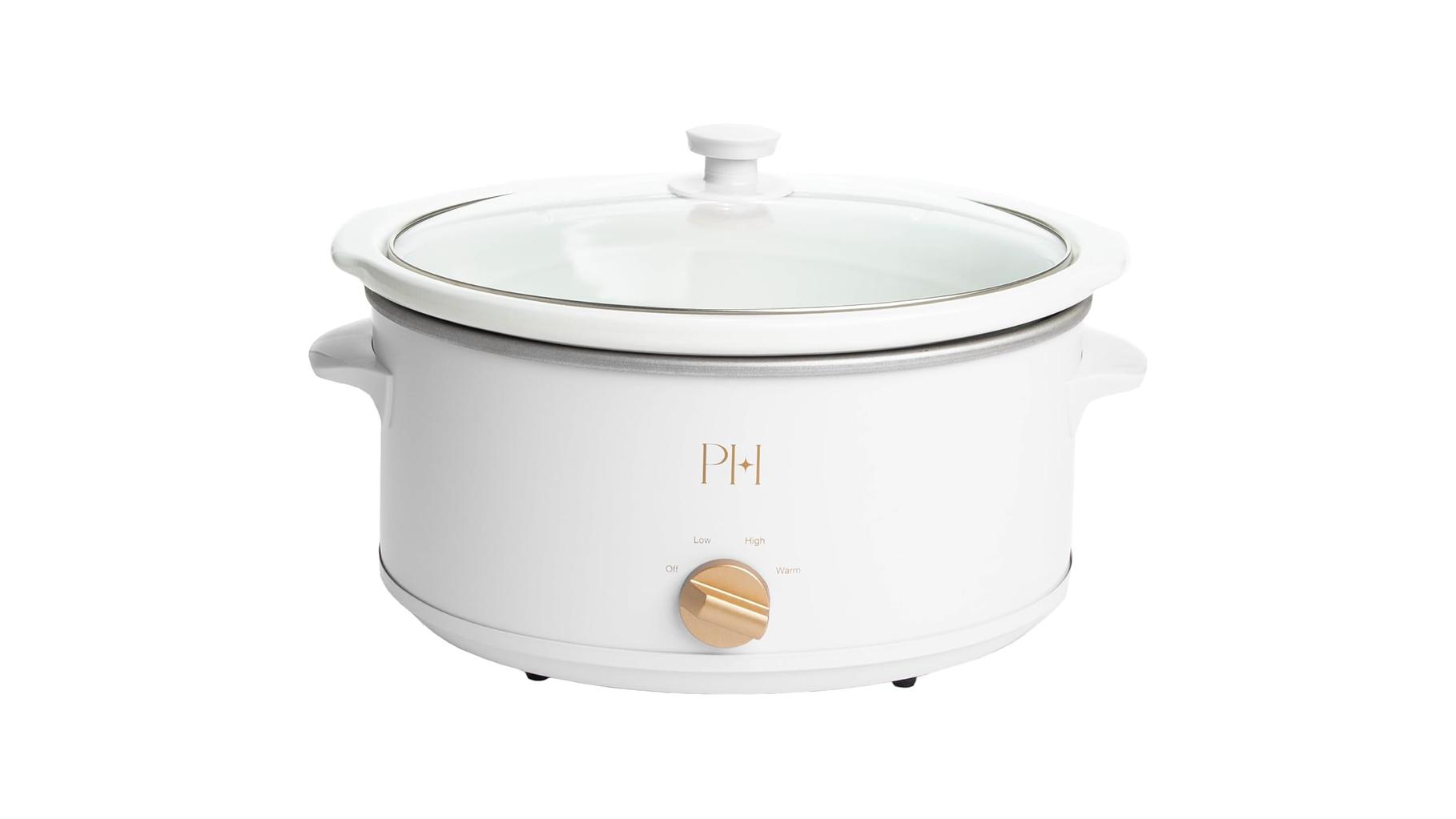 Paris Hilton 6-Quart Manual Slow Cooker, Features Three Settings (Low, High, Warm), Naturally Nonstick and Dishwasher Safe Stoneware Insert, Family Sized Capacity, White